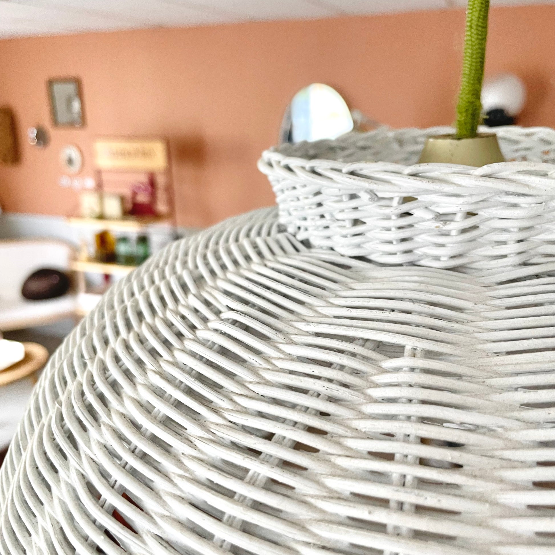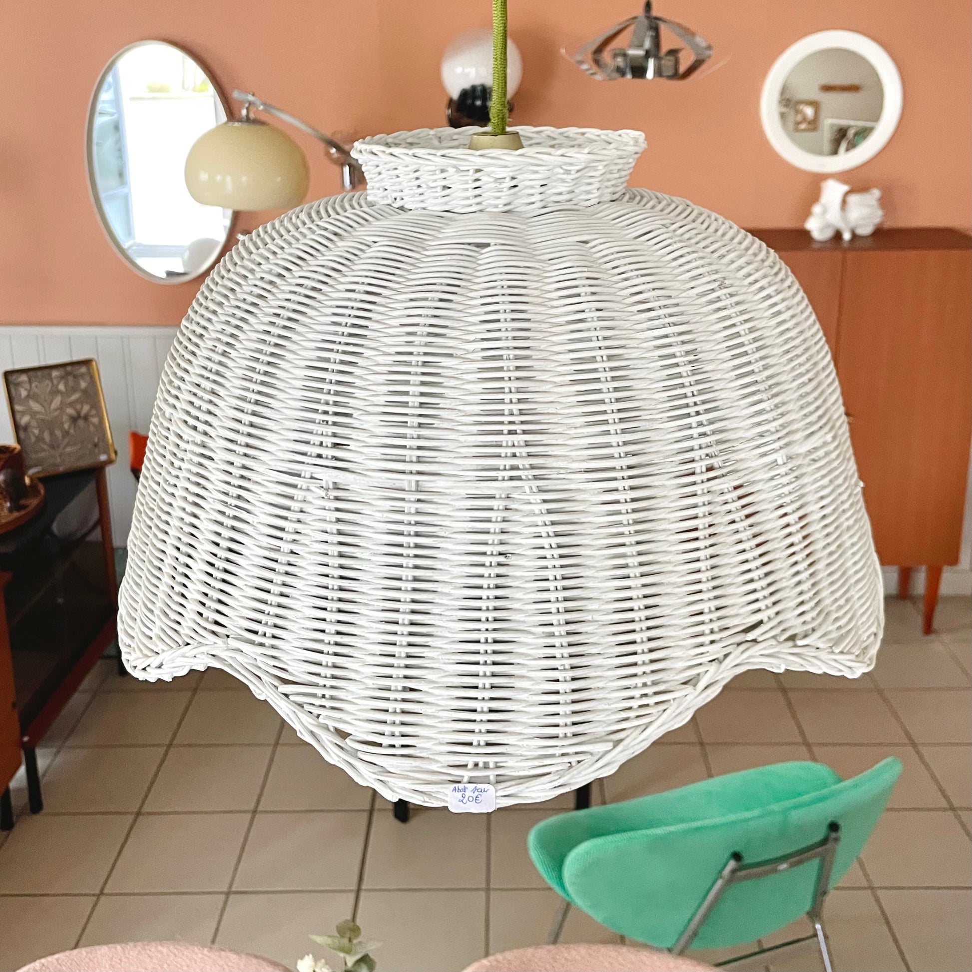 En parfait état ! Joli abat jour en osier. Blanc d’origine. Années 70