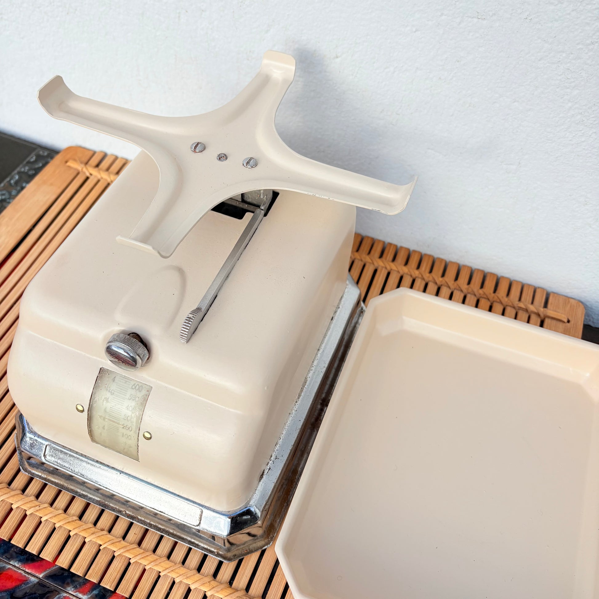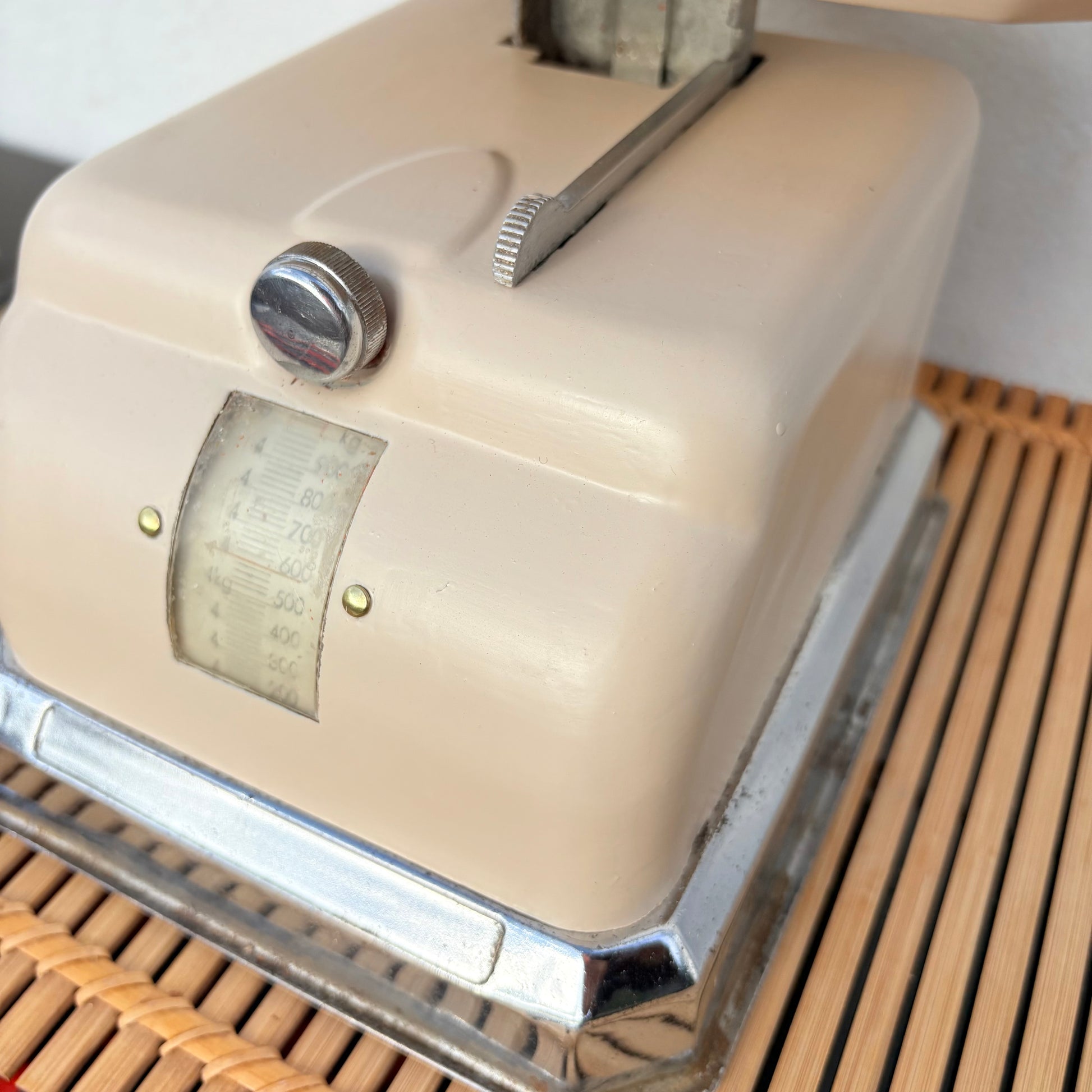 Balance de ménage, repeinte. Fonctionnelle. Joli effet dans une cuisine !