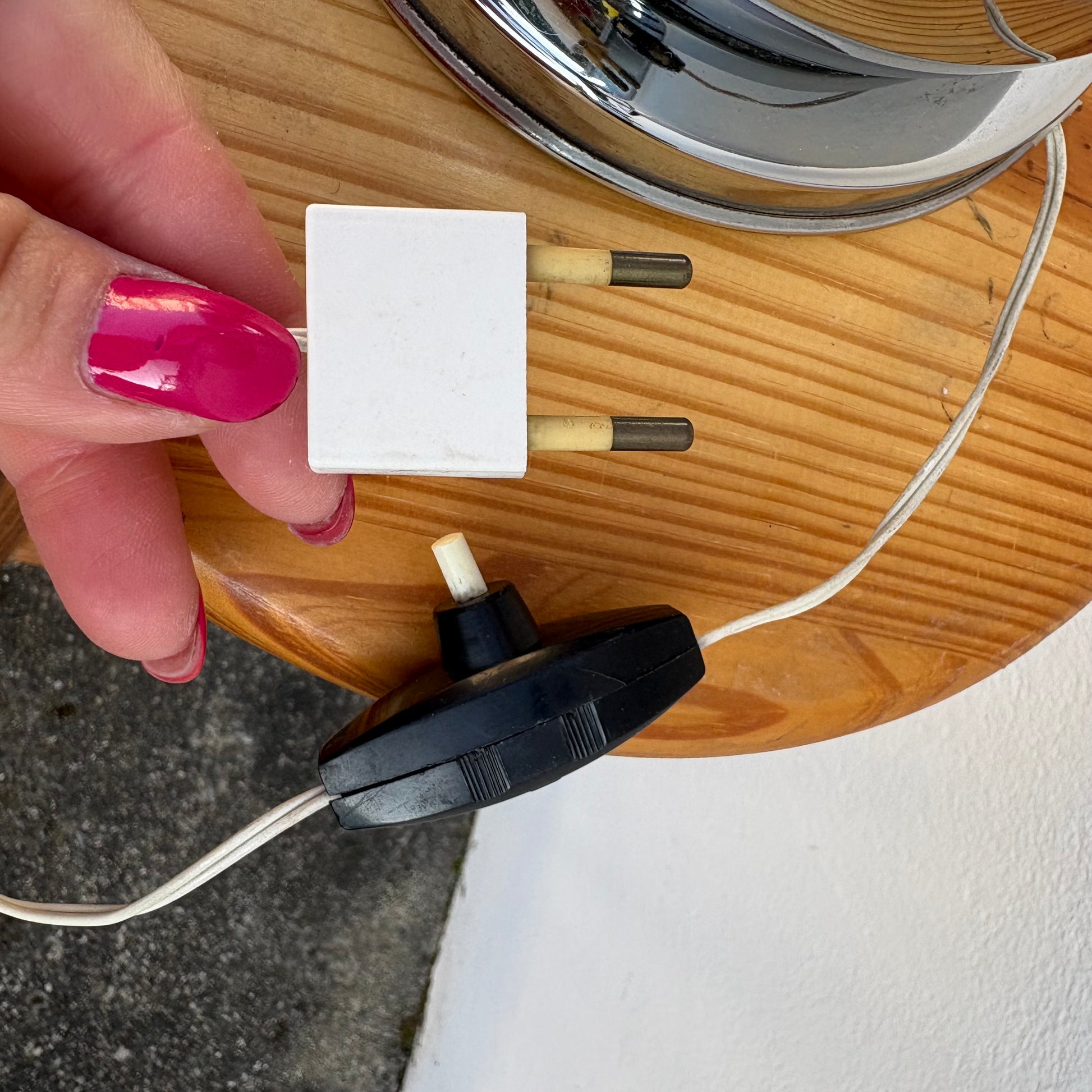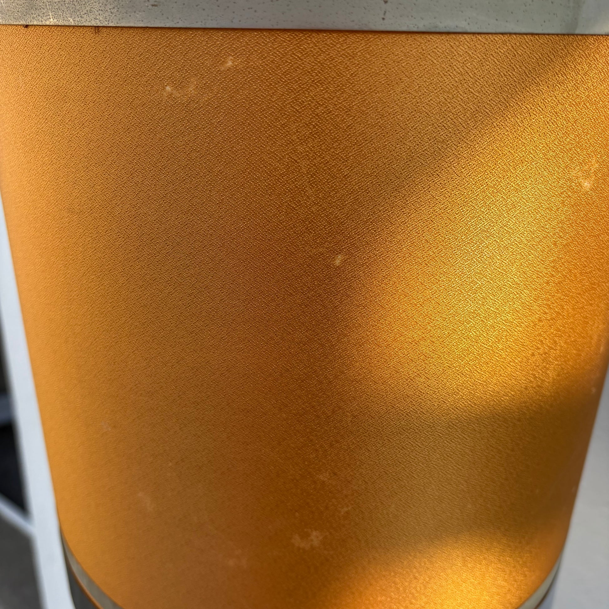 Lampe italienne style Space age. Pied en métal et abat jour orange avec détails métalliques. Quelques traces sur l’abat jour, à voir en photo. Peut être expédiée. Fonctionne parfaitement