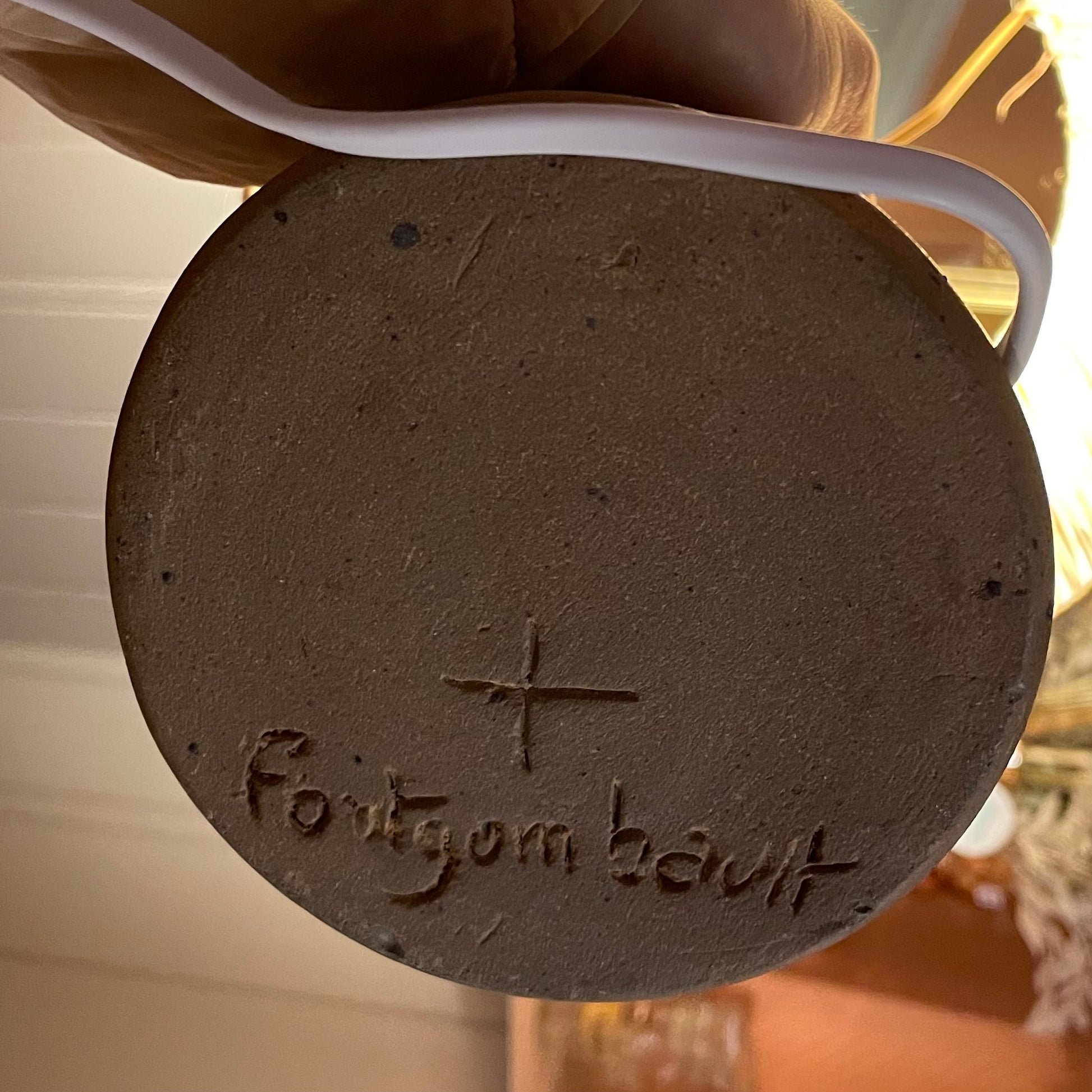 Grès de l’abbaye de Fongombault (Indre). Pied de lampe monté avec un système électrique neuf. Abat jour en raphia.