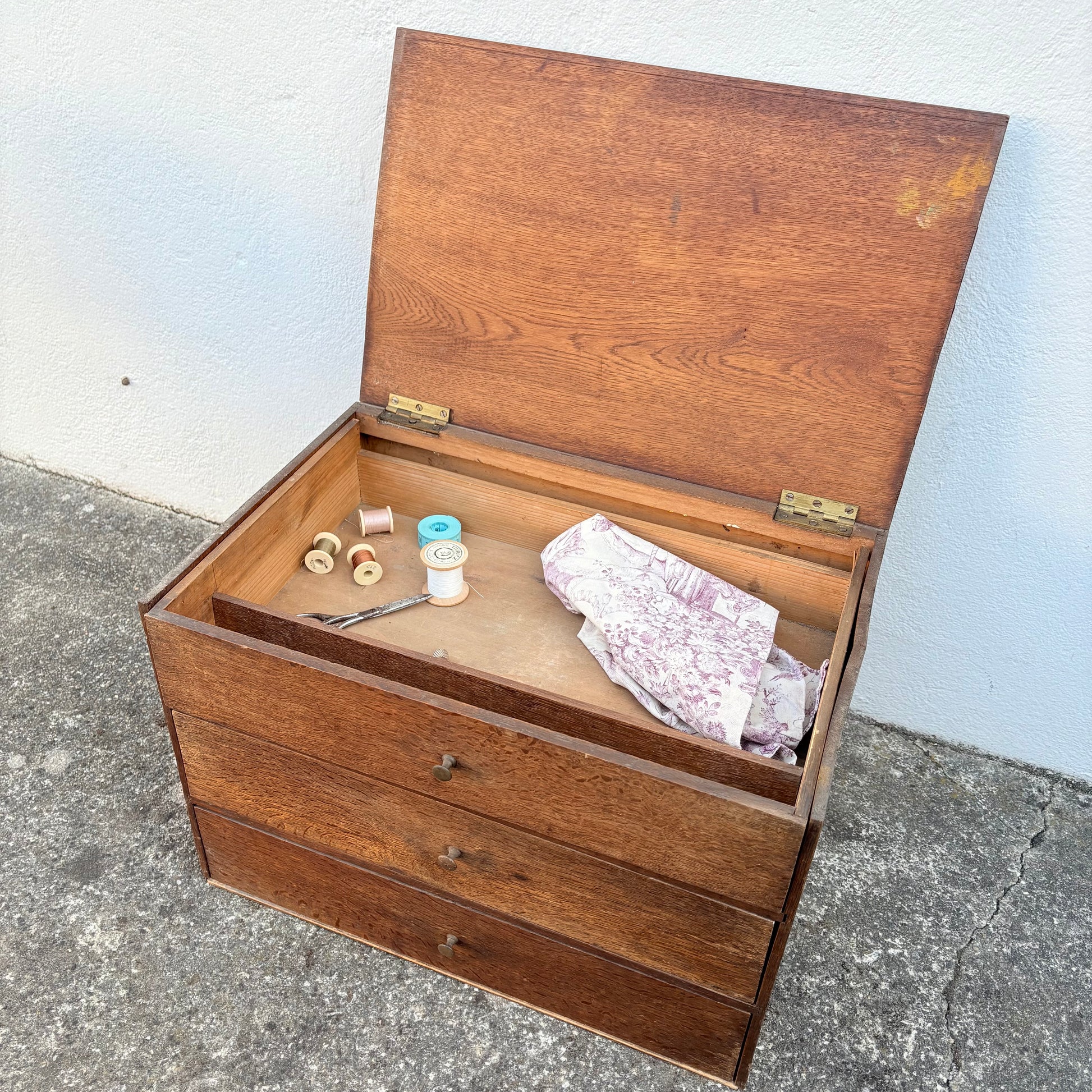 Meuble probablement de mercerie. 3 tiroirs. Peut servir de travailleuse