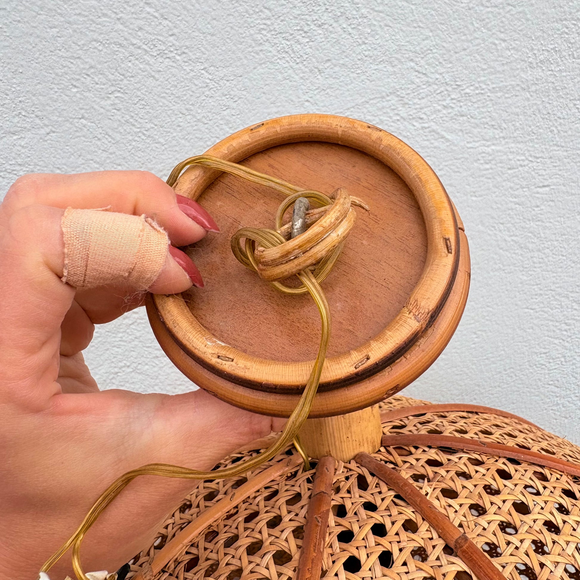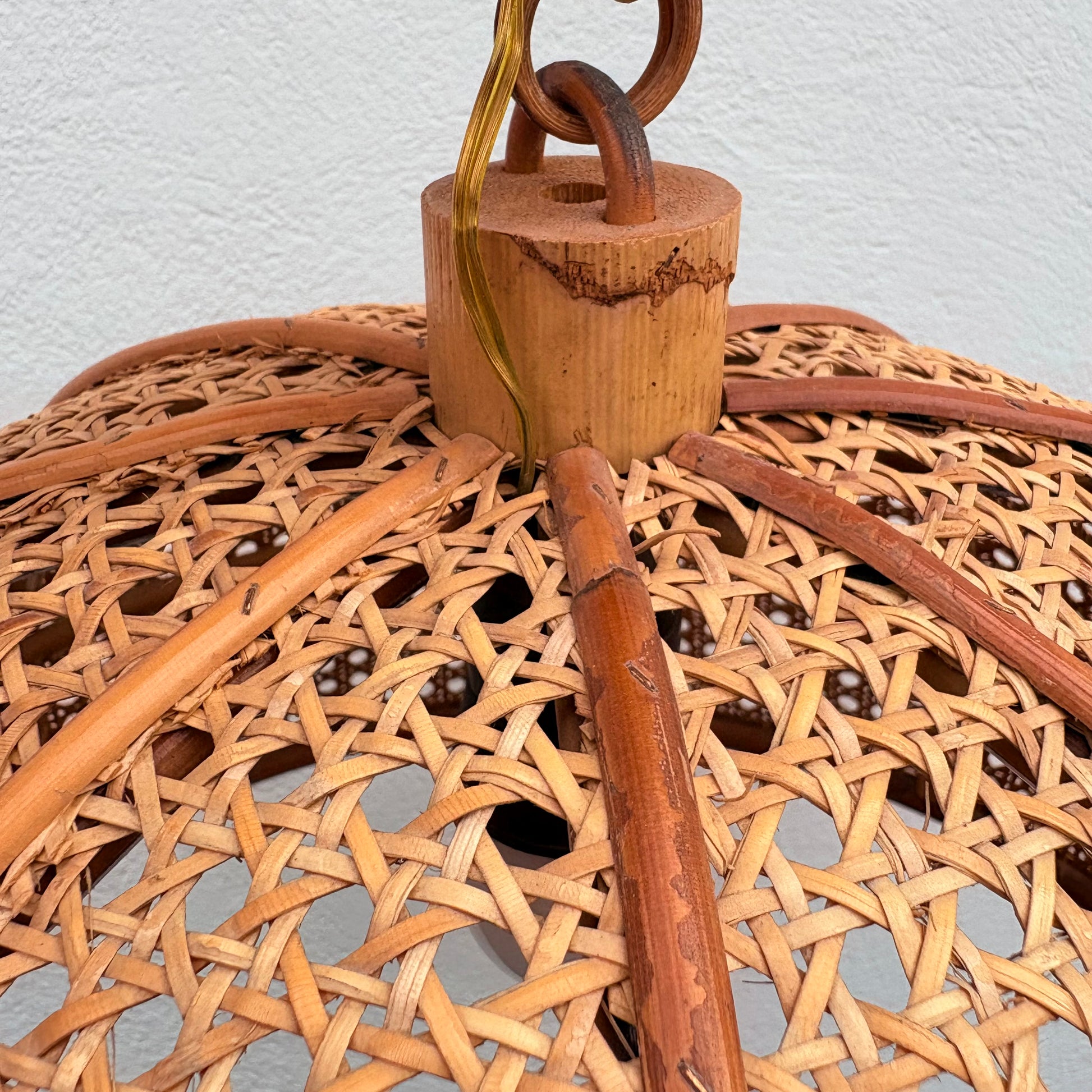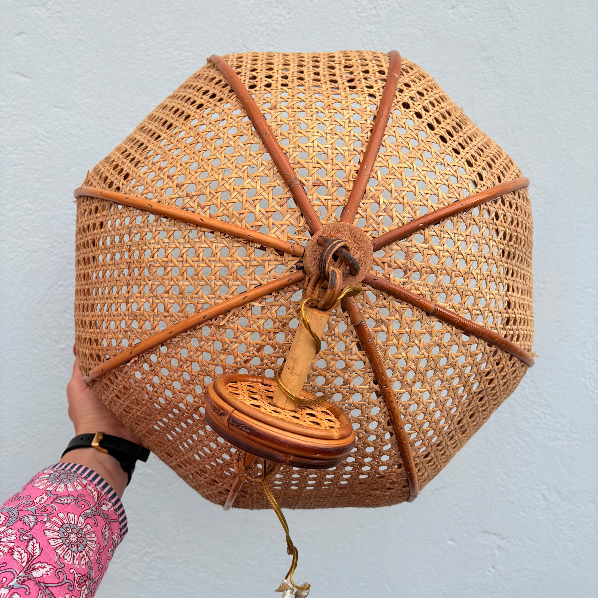 Suspension provenant d'Italie, fabriquée dans les années 60. Parfait état. Très grand diamètre. Rotin et cannage.