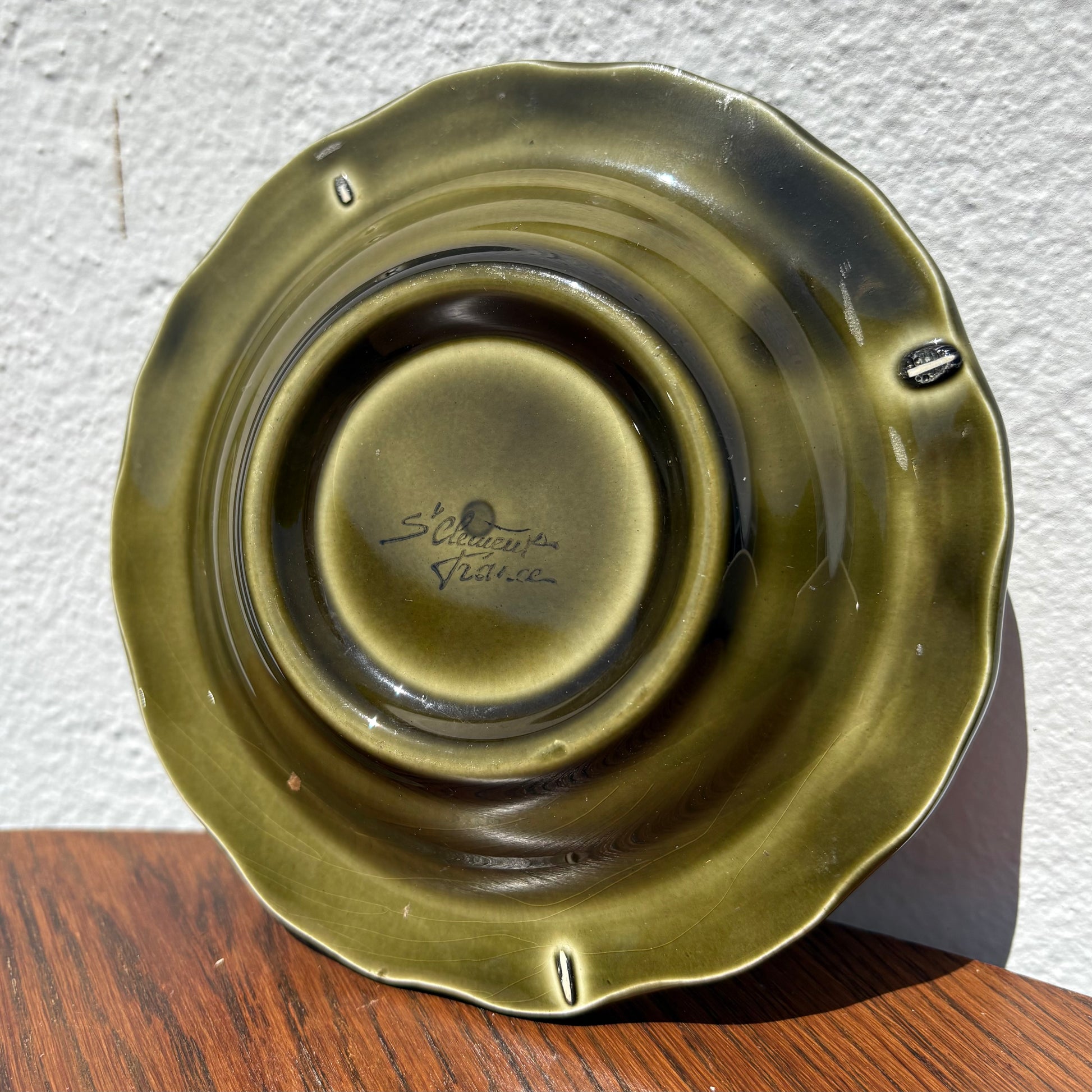 En parfait état! Couleur vert olive. Peut servir de vide poche, petit plat de service apéritif. À vous de choisir !